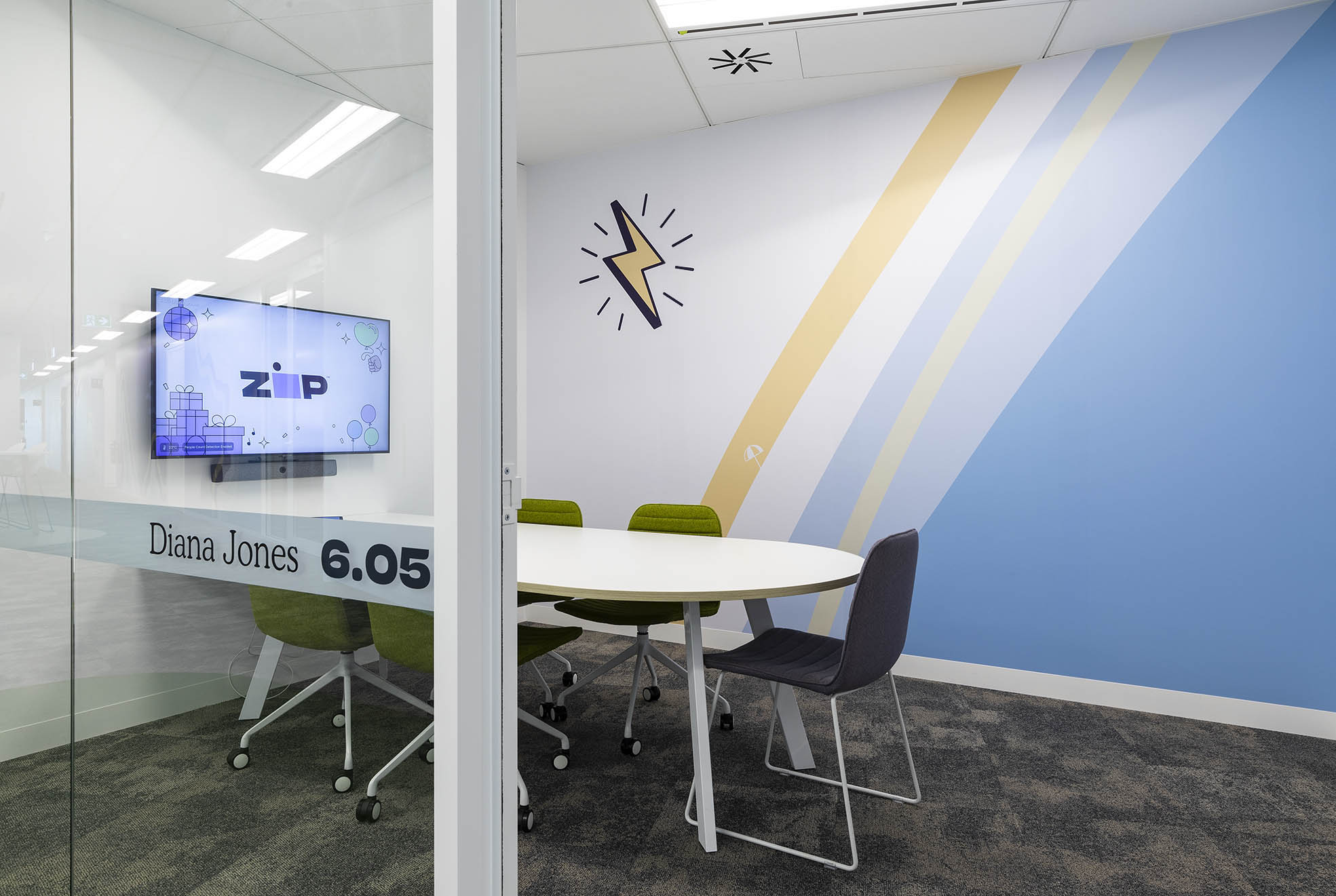 Our environmental graphics bring the rebrand to life across the space, tying together palette, interior design and cultural storytelling into a cohesive, vibrant whole. The result is a workplace that expresses Zip’s heart and soul. It’s energetic, collaborative, people-focused and deeply aligned with the unique culture that defines the organisation.
